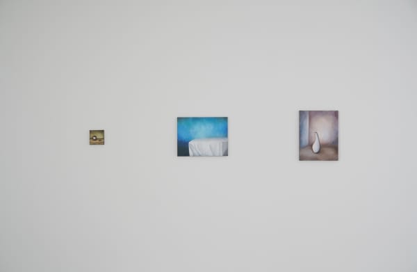 **방지영**은 일상속에 시선이 머무는 장면을 그린다. 반복되는 단순한 일상과 자연의 모습에서 일어나는 변화를 그녀는 캔버스에 옮긴다. 다소 미련해 보이는 행위 일 지라도 작가는 캔버스 전체에 짙은 어둠을 깔고 면과 형태를 만들어간다. 이는 여러 환경의 변화 속에 놓여짐에 따라 변화하는 마음의 원인에 의문을 품은 작가는 단순함을 그리는 것에서 답을 찾고자 하는 이유이다. 그리고 이 를 작가는 다양한 물감의 레이어를 쌓아 시간과 형태를 단순화 시키면서 고요한 마음이란 무엇인가에 대한 고민 을 응축하여 표현한다.